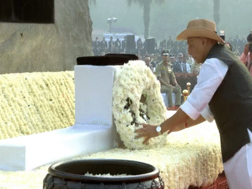 મંગળવારે સવારે પોલીસ સ્મૃતિ દિવસ નિમિત્તે રક્ષા મંત્રી રાજનાથ સિંહે નવી દિલ્હીમાં રાષ્ટ્રીય પોલીસ સ્મારક ખાતે શહીદોને શ્રદ્ધાંજલિ આપી હતી.