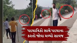 પાલિતાણાના શેત્રુંજી પર્વત પર પદયાત્રિકો સાથે પદયાત્રા કરતો જોવા મળ્યો સાવજ, જુઓ Video